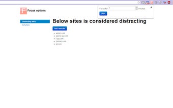 Focus is een handige Chrome-add-on ontworpen om gebruikers te helpen zich te concentreren door afleidende websites te blokkeren. Deze tool stelt gebruikers in staat om een bepaalde tijdsperiode in te stellen waarin ze zich kunnen richten op hun taken zonder onderbrekingen van sociale media of andere afleidingen. Met een gebruiksvriendelijke interface is het eenvoudig om de instellingen aan te passen aan persoonlijke voorkeuren.